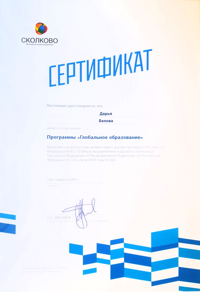 CERTIFICATES Education Additional education and languages Conferences Workshops Internships and Assistanships Competitions Поделиться ссылкой: Click to share on X (Opens in new window) X Click to share on Facebook (Opens in new window) Facebook Like Loading...