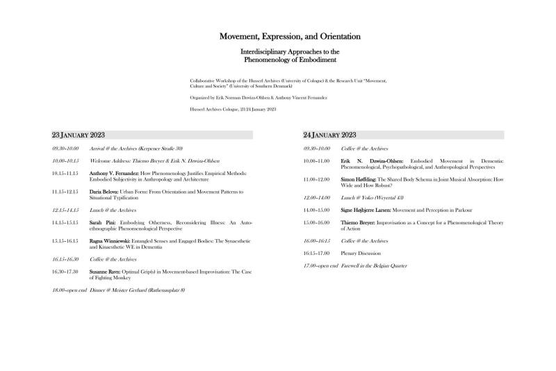 ‘Embodiment – Movement – Environment: Interdisciplinary Perspectives’. Presenter Academic events: organisation and participation, Activities